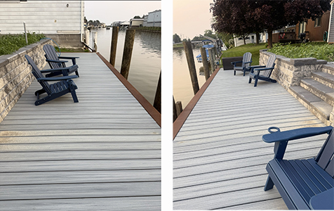 Waterfront all new patio for 2026! Deck seating along the Belle River Marine city vacation home.